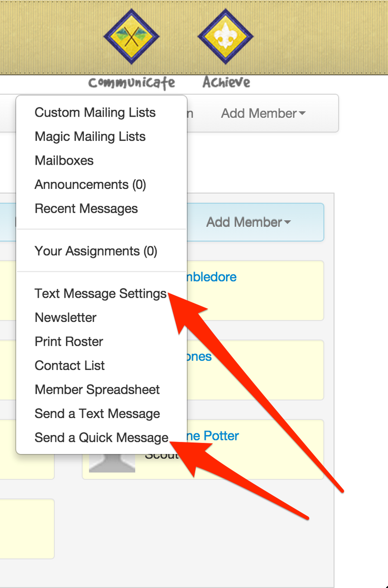 This morning I released a new feature that allows you to send text messages to any of your mailing lists. You will now see two new options under the Communicate Badge: Text Message Settings and Send a Text Message.